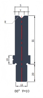 | Nome del prodotto | Stampo a V singolo per pressa piegatrice LYNCCN BCY55.88 V10 | Aprendo a V. | V10 |